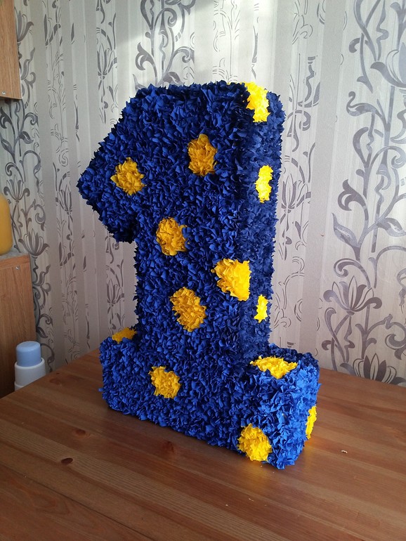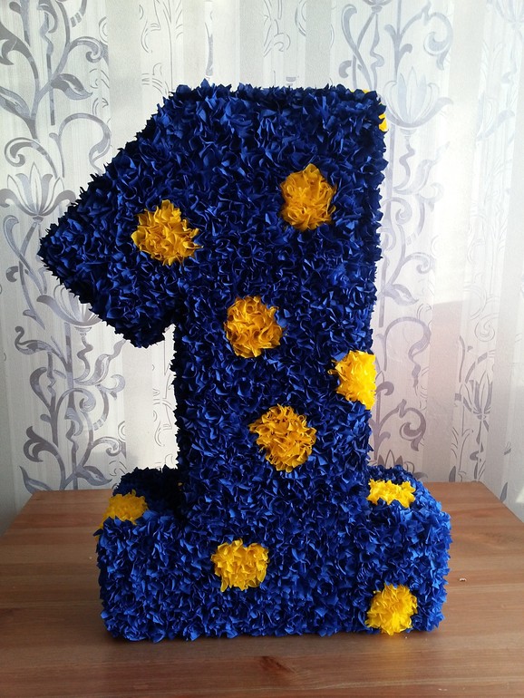 Синяя в желтый горох (основной цвет комбинированный - синий с темно-синим). Сделана в технике торцевания. Ручная работа. Заряжена мега-позитивом! Дарит ощущение праздника и всю теплоту нашего дня рождения. В подарок отдам пять мармеладных цветочков.