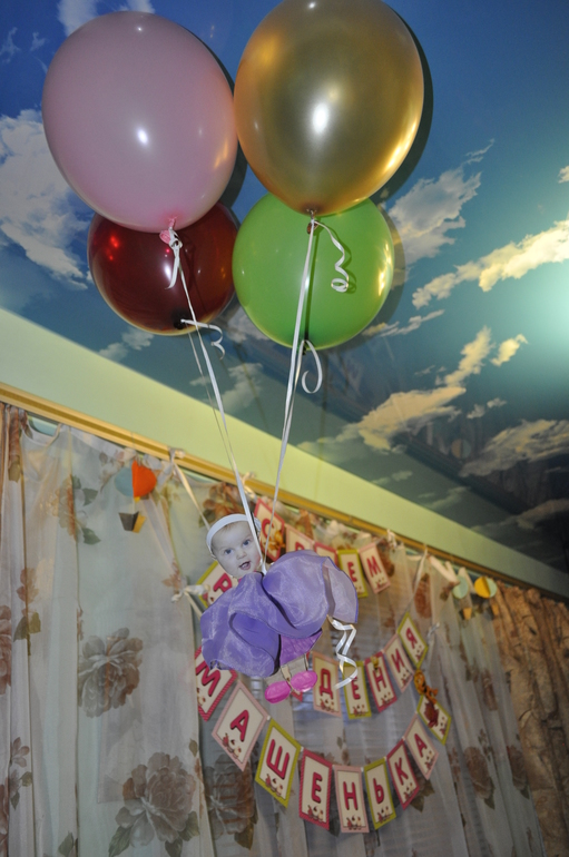 Нам годик! Опыт празднованияДоброго времени суток! Хочу поделиться нашим празднованием. На годовастие доченьки я заказывала набор у http://www.babyblog.ru/user/lenta/Fantaazia , в этом году хотелось сотворить самой. Темой были небеса. Воздушный шар.