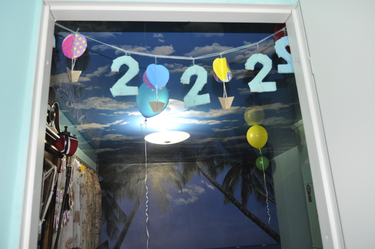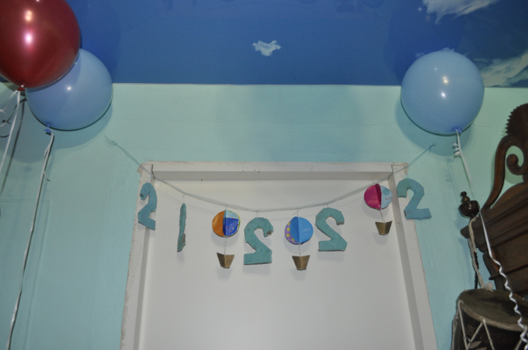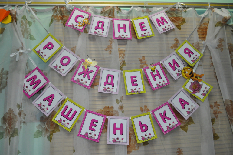 Растяжку оставила с прошлого года, только убрала прошлую тематику "Маша и Медведь", добавила пчелок.