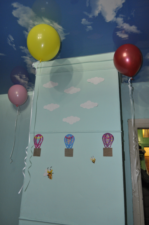 Также украсила комнату воздушными шарами и облачка, в тематику интерьера.
