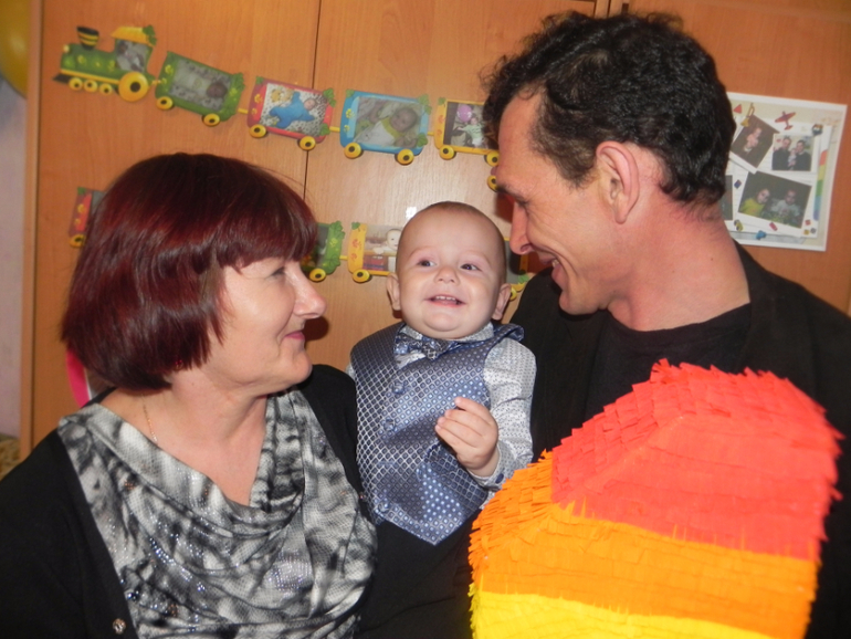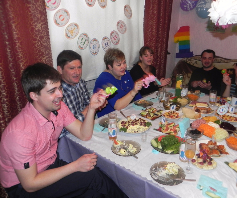 Провели парочку конкурсов,люди были просто счастливы,что мероприятие в сопровождении сценария и меня горластой)))Сын тоже нас позабавил-для него была викторина "про будущее", выбрал в обе руки одновременно клубок ниток и ключи,и пытался ещё впихнуть чеснок))) значит это,что выбрал длинную жизнь и благосостояние,так же здоровья хотел.