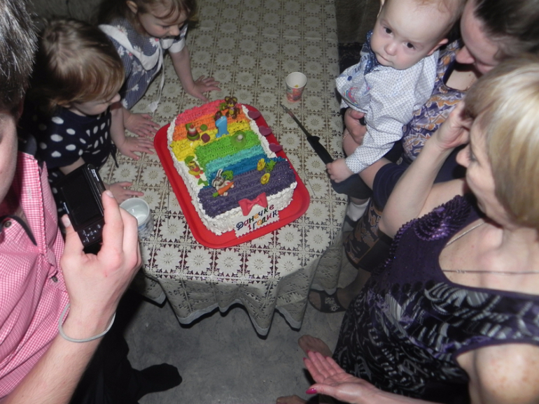 Именинник отдохнул немного и тут мы принялись за торт))торт был в личном исполнении мамы и немного моя помощь присутствовала,результат меня от души порадовал...