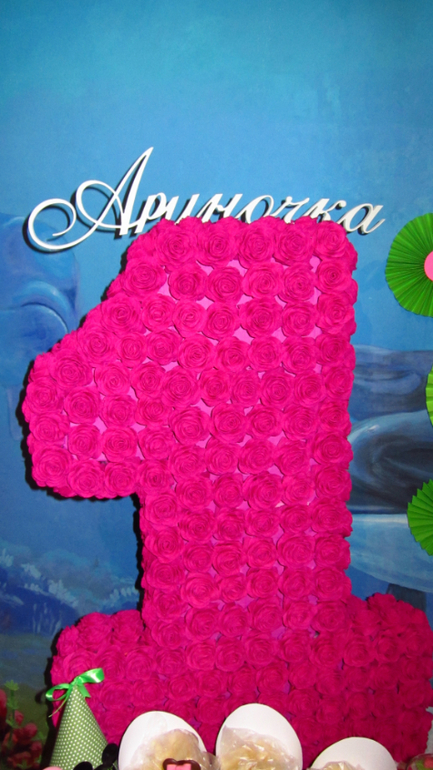 Все делала своими руками,только тортик тетя Ариночке подарила.Готовилась пол года(по ночам когда доченька спала).Годовасие отмечали в баре(что очень облегчило маме жизнь).Доченька осталась очень довольна!!!!