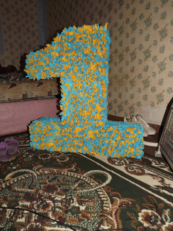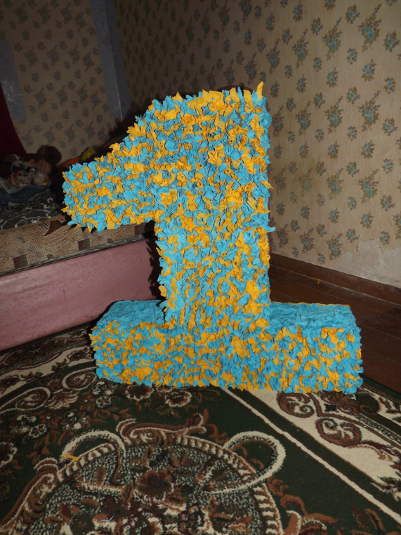 Подготовка к ГодовасиюВот наша красавица единичка! Она не супер красивая но все же сделана на скорую руку, с малышом тяжело делать, так что я за 5 ночей сделала(до 3 ночи сидела). И рада результату, конечно в цвете не очень, но другого не было. Вообще смотрите, сзади я вообще просто с остатков сделала