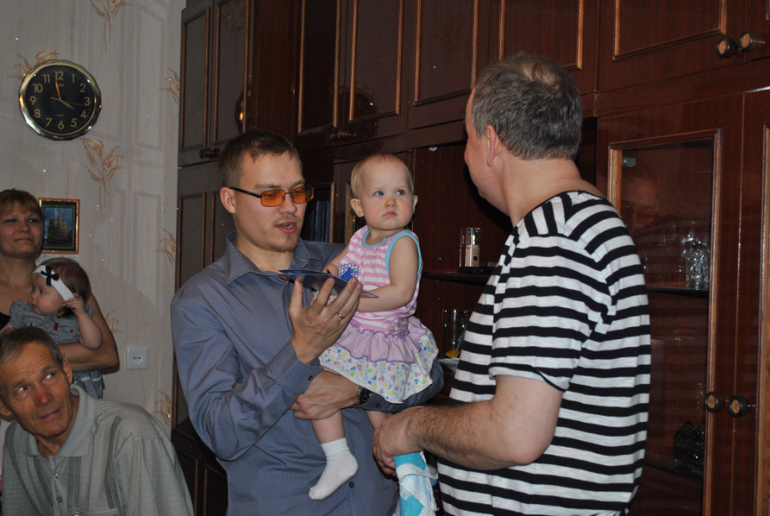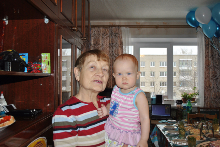 Именинница в свой первый День Рождения была серьезна, как никогда! Все-так важная дата!))) С прабабушкой.