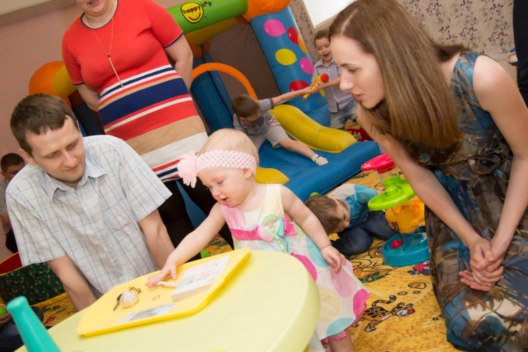 В этот раз выбрали Непоседы . В гости приглашали близких друзей и родственников. Всего у нас было 10 ребятишек и 10 взрослых. Места всем было достаточно. Снимали помещение на 2 часа. Обычно снимаю на 3 часа, но малышам это много, поэтому в этот раз ограничились двумя и было вполне достаточно.