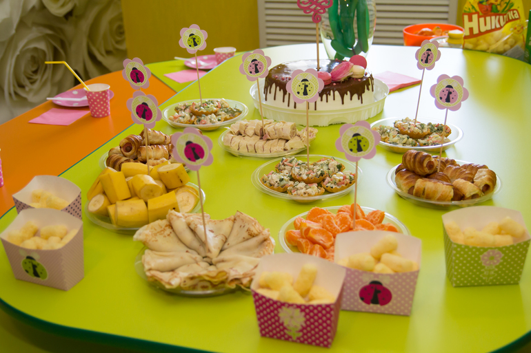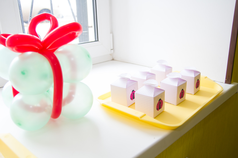Праздник у нас был в горошково-букашковой расцветке. Все украшения печатала с этого сайта.