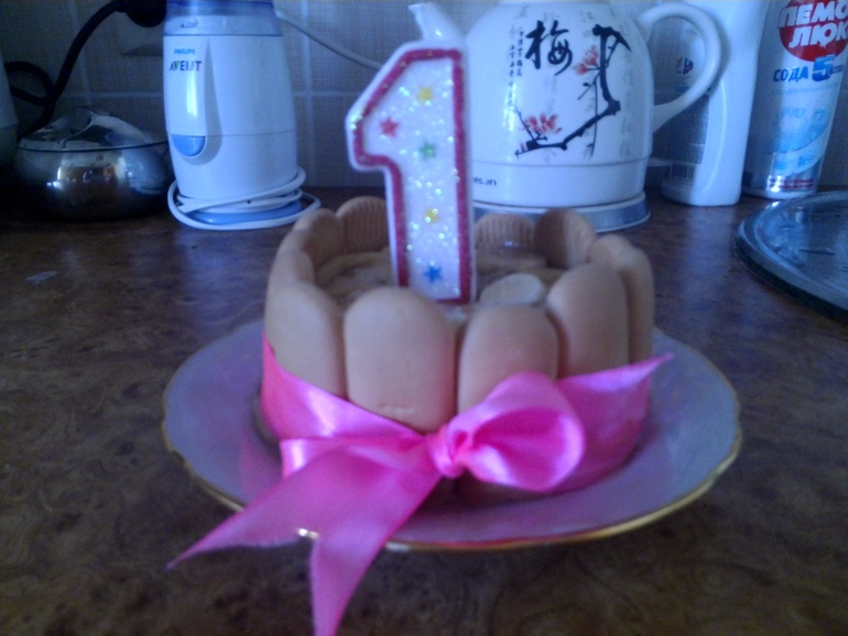 Торт прожил недолго, именинница смотрела на всех удивленно и ломала торт)))) зато мама спокойно поела и выпила шампанского.