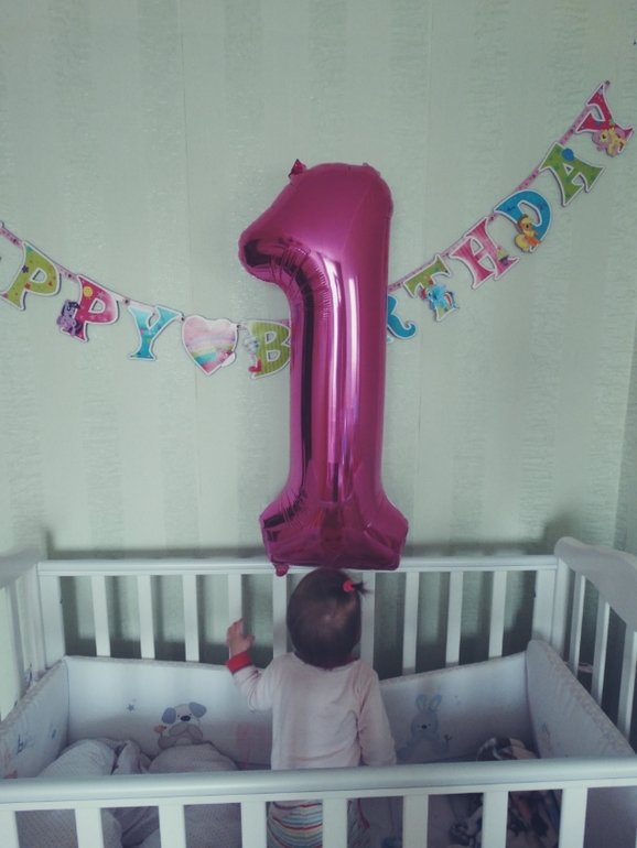 Я предпочитаю готовится к таким мероприятиям постепенно и с запасом,но из-за сессии и катастрофической нехватки времени,бОльшая часть была сделана на последней неделе!Единственное,что я заказала заранее-это был торт!Оформлять ДР в каком-то стиле я даже не собиралась,как-то не моё это!тем более Соня очень маленькая и предпочтений в этом плане у неё быть не может!Идея сделать большую единичку обошла меня стороной,зато я купила большой розовый шар!Перспектива фотографироваться на фоне стен мне тоже не очень нравилась,поэтому я решила оформить небольшую фотозону!Купила много праздничной атрибутики и начался творческий процесс!Хотя мне пришлось изрядно помучиться,Соня всё время крутилась под ногами и пыталась дотянуться до шариков...за день до торжества я успела закончить)В субботу (2 мая) София проснулась с улыбкой и сразу же получила свой шар!Как обычно....восторг был обеспечен!Ребёнок был так счастлив и не выпускал единичку из рук! Результат-ни одной нормальной фотографии((