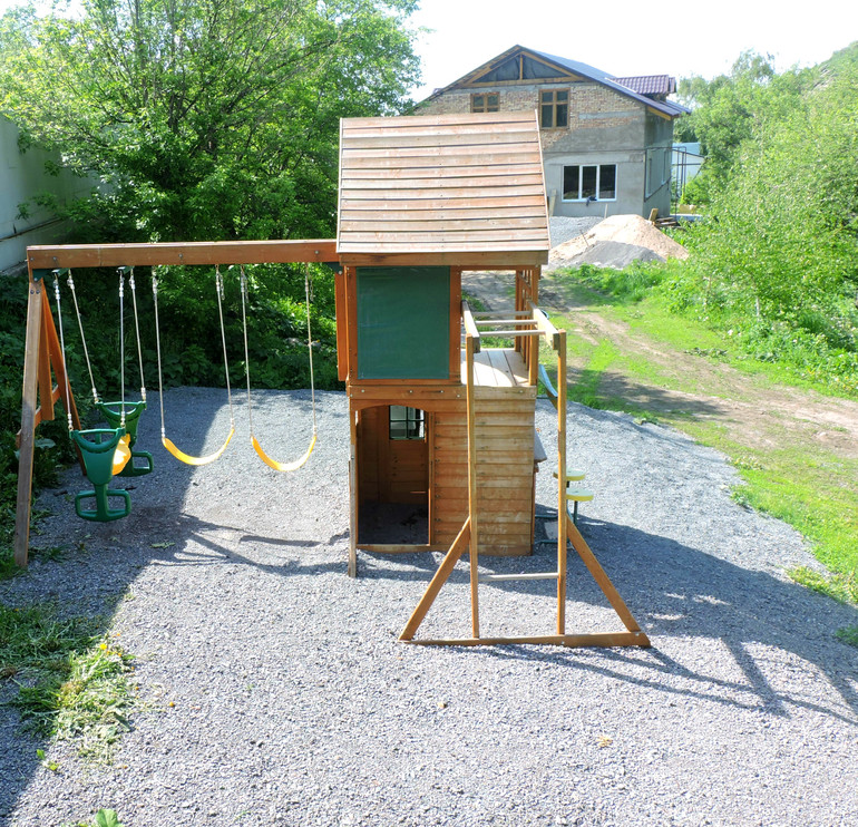 Посмотрели беседку, заглянули в домик. Там есть большой диван и двухспальная кровать. Две комнаты, санузел. Мы планируем на 12 часов поехать, но подозреваю, что можем и на 24 часа остаться.)