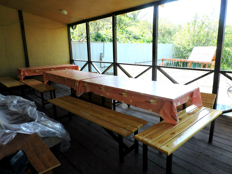 В горах очень прохладно, ночью еще снег выше выпал. Теперь я знаю, как одеть детей, как одеться самим, как украсить беседку. Узнала сколько она метров. Узнала, что посуда у них есть своя. Коктальницы нет, саксаула нет.
