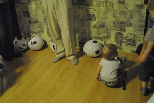 Бумажные пиньяты)уже поломанные)делала 8штук,в виде мячей))МК тоже в инете много)смысл в том,что на шар лепим газету,смоченную в клейстере(вода + мука),на два слоя,затем лопаем шар,наполняем конфетами,закрываем дырочку и украшаем))делала уже второй раз,дети всегда ждут с нетерпением))