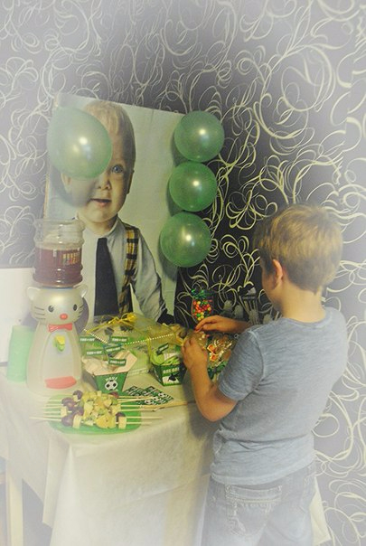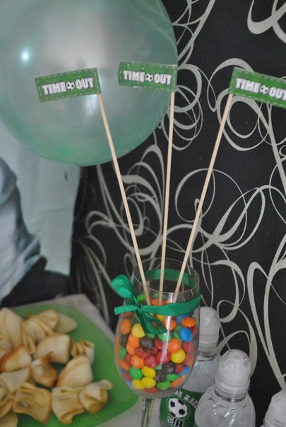 за 1,5 месяца я заказала бумажную атрибутику(набор фотбол) и торт с мячом..и начала сама творить))