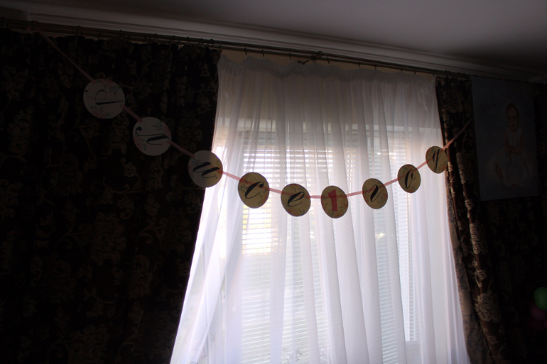 Шары для украшения комнаты я купила в гипермаркете, так как намучалась бы сама,да и времени не было делать самой помпоны. Хотя у меня были готовые,делала Алисе на 6 месяцев, но они немного отличались по цвету.