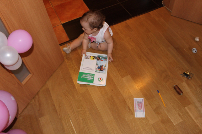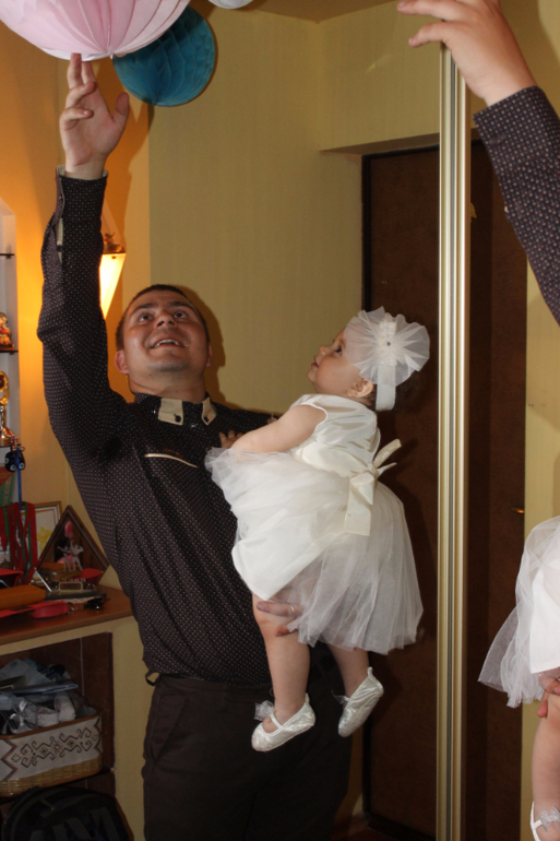 Собирались гости к 17, Алиса спать категорически отказывалась,а еще жара неимоверная стояла,я ее перед гостями везде пофоткала, снимали и одевали платье 3 раза из-за духоты)). Когда гости пришли, поздравили Алису, то после первого моего тоста я ее благополучно уложила и под общий шум она проспала часа 1,5-2