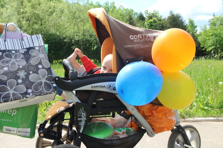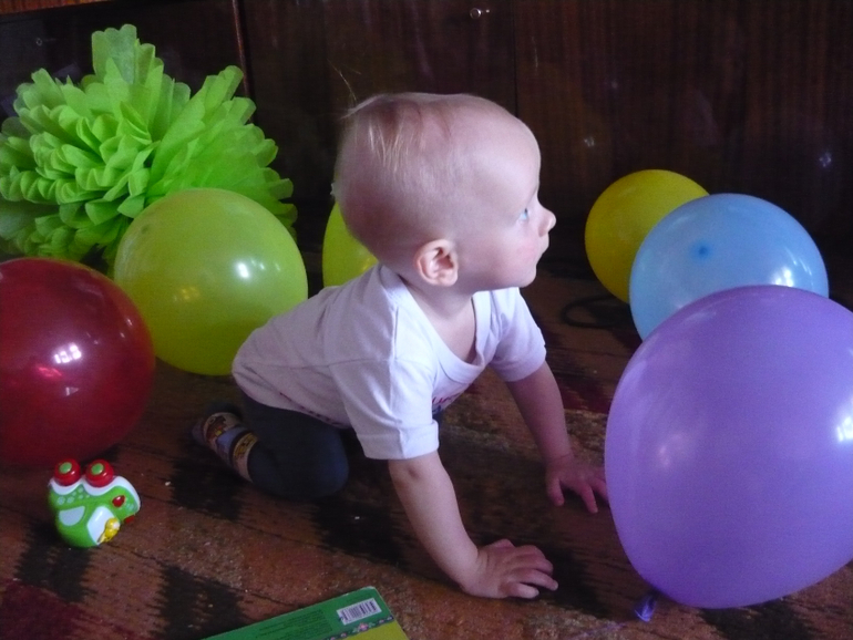 пока я собирала все для прогулки - сынок резвился с шариками и смотрел мультики.