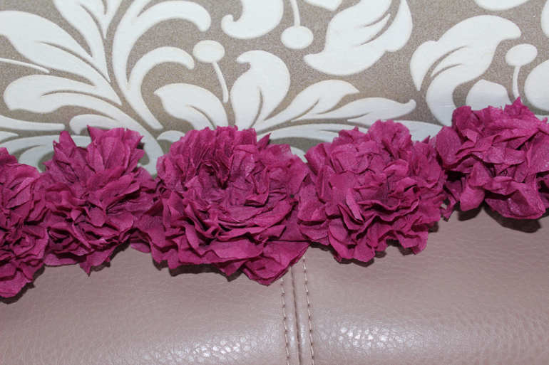 1) Единичка. Самой главной своей миссией я считала сотворение циферки. Времени для этого было довольно мало, терпения тоже, так как делать такие вещи при детях-занятие архинервное. Но всё-таки… Хотела более нежной, но получилось то, что получилось. Ассортимент магазинов не позволил мне в полной мере осуществить задуманное. Салфетки нашлись только фиолетовые (или бордовые, или?..) Кстати, на заметку - у меня были салфетки (фиол) и бумажные платочки (бел). Так воть - с платочками работать намного приятней, расщеплять легче, да и цветочки из них получаются более нежные и воздушные. Я делала гармошки, и из двух 3х-слойных салфеток у меня выходило по два цветочка. Не знаю, сколько всего наделала, но явно меньше, чем у девочек (у которых по 400 и более штук). Муж не оценил, сказал, что цвет мрачный. Мне сначала тоже так показалось, а потом вроде ничего. Справедливости ради отмечу, что пришлось мне прибегнуть к помощи ближних - примерно 1/4 часть цветочков мне помогли накрутить родственники.