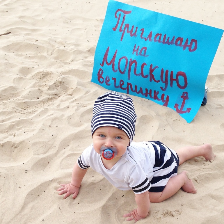 Сначала выбрала тематику праздника, решила в морском стиле. Разослали всем гостям пригласительные.