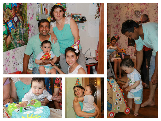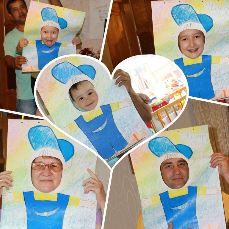 ... и с 6 месяцев до года) Самый длинный конкурс. Было приготовлено 4 стопки по 12 фото, разложить по возрасту. Разделили гостей на 4 команды. Кто-то на подоконнике, на диване, на полу, стопки готовила так, чтоб бабушкам и дедушкам попадались фото именно с ними, поэтому они охали-ахали, так серьезно все складывали, потом ходили друг у друга смотрели, растянули на полчаса. И половину фото у меня стащили))). Кстати, никто не смог всё правильно разложить! Часть фото потом прикрепили к стене в виде паровозика.