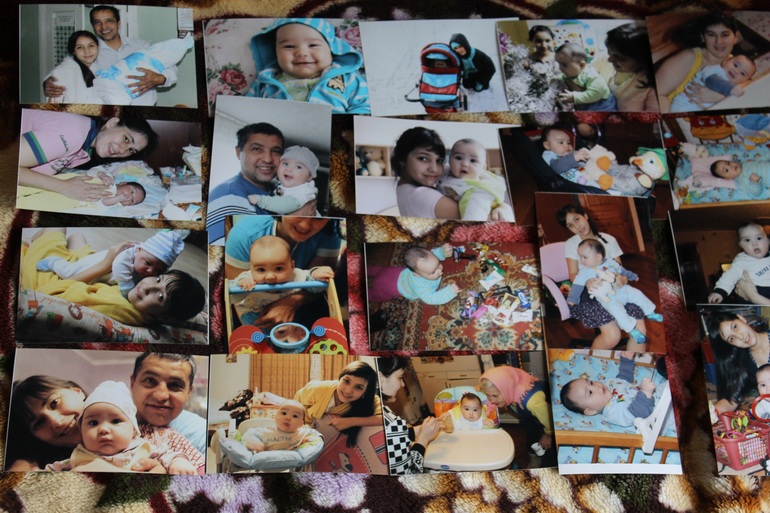 Дочь повесила на стену фото сына с Узи (на фоне фотографии дочери 3 лет), к нашей свадебной фотографии прикрепила сердечко и бирочку с роддома). Фото с Узи с свое время почти никому не показывала, поэтому разглядывали все.