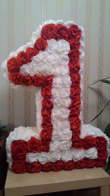 Подготовка к ГодовасиюВсем привет)Вот уже прошло две недели от того дня как мы с мужем начали делать единицу...и вчера я ее закончила!Конечно не без этого чтоб доченька мне не помогла))оторвала уже три розочки,но мама уже отремонтировала))Завтра посчитаю сколько ушло цветов))Сначала я оочень хотела быстро доделать и посмотреть что получиться,потом уже расслабилась))садилась вечерами на 1,5-2 часа.