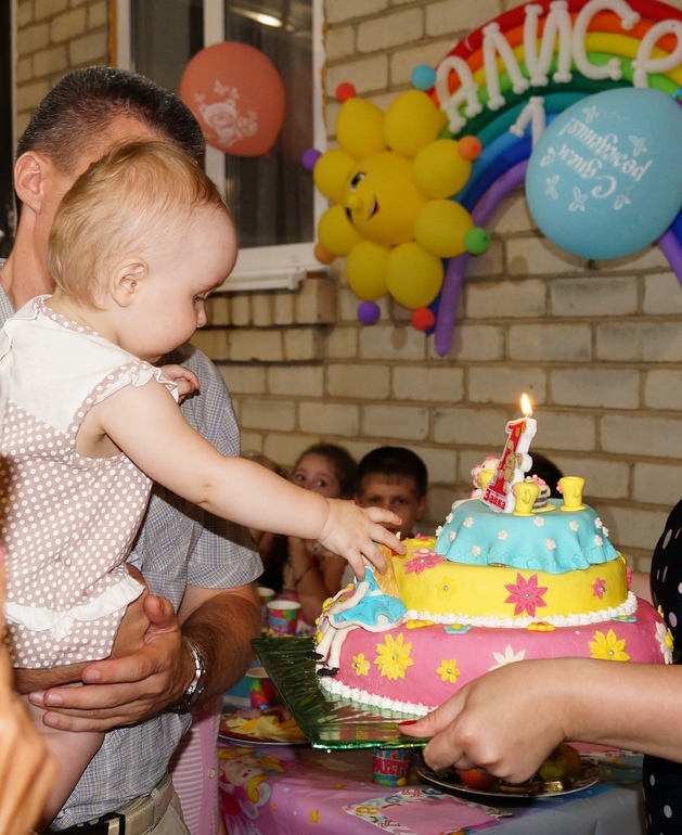 Нашу Алису мы ждали целых 8 лет и праздник хотелось устроить незабываемый и веселый.Это я так хотела..мечтала....Но получилось как получилось,без всяких грандиозных приготовлений,но все гости были довольны,а их было не так уж и мало - 43 взрослых и 9 детей...мы с мужем из многодетных семей)))так что родни даже самой близкой,которых даже если ни звать,то все равно придут, очень много.