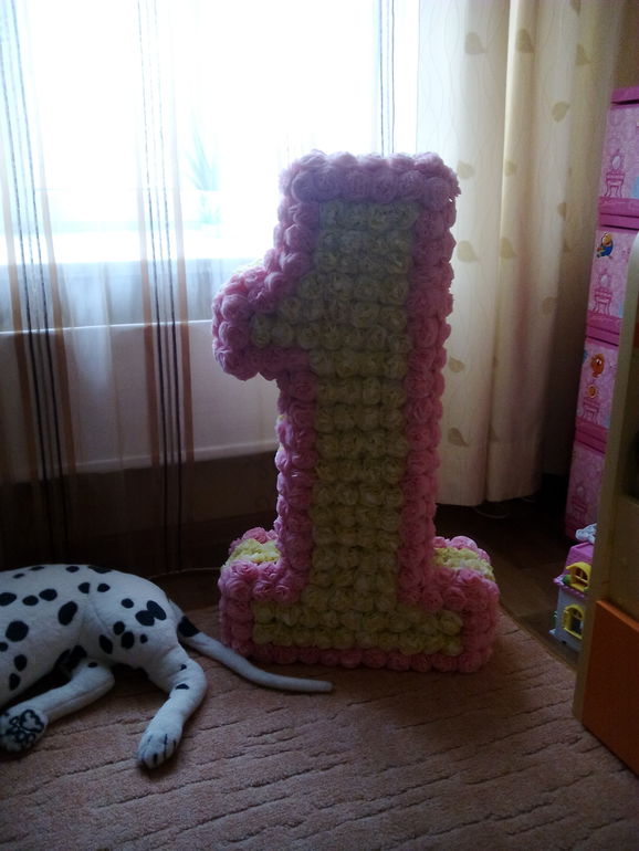 Насмотрелась я на вас, какие вы умнички, какие красивые цифры у вас получаются! И решила тоже смастерить единичку на ДР младшей доченьки, как раз в воскресенье нам ГОДИК!!!!