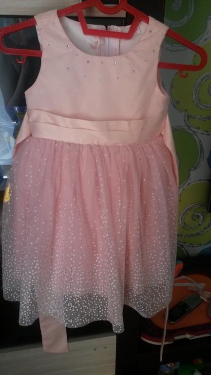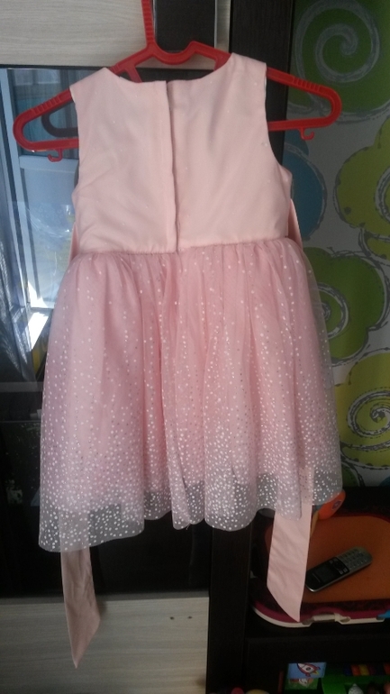Одевали один раз на годик(для фото),состояние отличное. Сзади завязывается бант. К нему есть туфельки некст(по стельке 12см) и бантик-повязка на голову