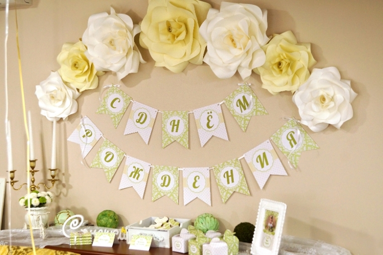 На днях оформляли Первый праздник маленькой Сонечки) Мама Сони предложила сделать оформление в нежных оливковых тонах под стиль платья именинницы