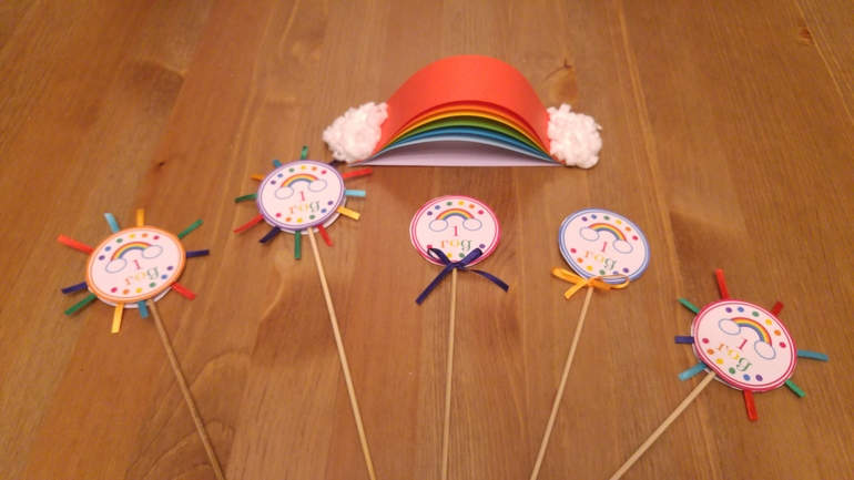 Ещё плакатик А4 С Днём Рождения в стиле Радуга, как топперы.
