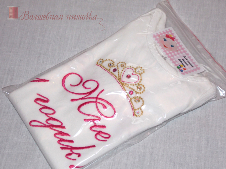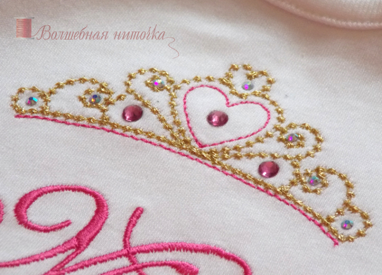 Рисунок - машинная вышивка (моя). Спереди на вышивке есть стразы DMC, сзади надпись: "little princess".
