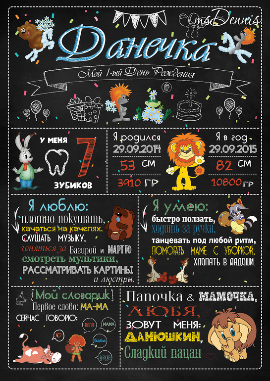 msDennis в Годовасие 10 лет Постеры/плакаты "Мои достижения" и анкета для гостей Предлагаю свои услуги! Всем "Трям!" Наши новые постеры "Мои достижения" и анкета для гостей Посмотрите еще 20 записей на эту тему Отменить Ответить Kozyafka А как заказать такой? 24.10.2015 Ответить msDennis Напишите мне в лс к какому числу вам нужен плакат,пжлст? 24.10.2015 Ответить оля какая цена в электронном виде/? 10.10.2015 Ответить msDennis 600р 10.10.2015 Ответить НОВИНКА! Комплект для маленькой принцессы! Набор "Мишка Тедди для девочки" Чаты Беременных Выберите чат: Январята-2026 Февралята-2026 Мартята-2026 Апрелята-2026 Майчата-2026 Июнята-2026 Июлята-2026 Августята-2026