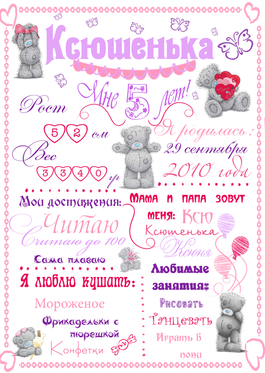 Натали в Годовасие 10 лет Новый плакатик на 5-летие девочки. Предлагаю свои услуги! Вот такой плакатик с мишками получился для прелестной Ксюшеньки на ее 5-летие! Посмотрите еще 20 записей на эту тему Отменить Ответить Фотокнига Первый год Сладости на Хэллоуин Чаты Беременных Выберите чат: Январята-2026 Февралята-2026 Мартята-2026 Апрелята-2026 Майчата-2026 Июнята-2026 Июлята-2026 Августята-2026