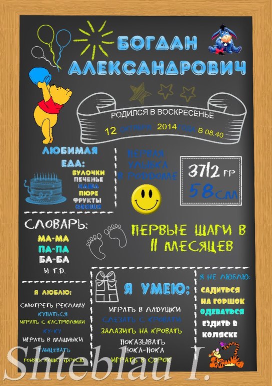 Плакаты мелом (меловая доска) - модная тенденция в оформлении детских праздников! На таком плакате можно подробно, а главное красиво рассказать все, чем Вам запомнился первый год жизни малыша (или любой другой период жизни ребенка).