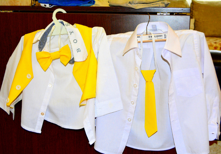Наряды моих мальчишек. Т.к. ярко желтое я ничего не смогла найти, как не старалась, решила сшить. И вот за два вечера вроде что-то получилось))