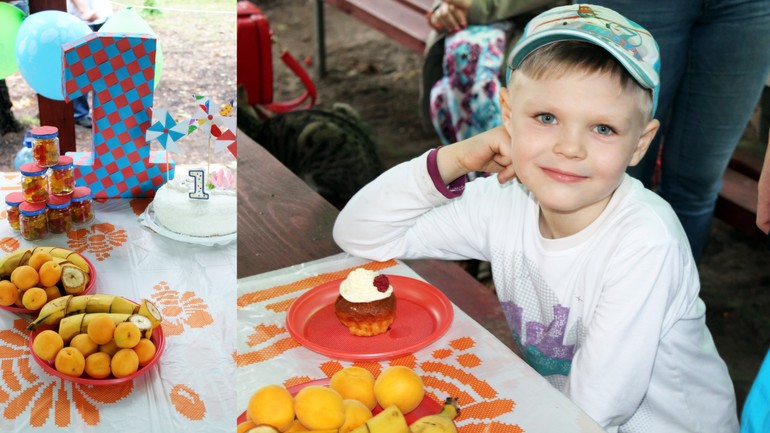 Каждому ребенку кексик (сама делала))) и баночка с желейными мишками (задумка была сверху тканью обтянуть, но времени хватило только на бумажечку))). Планировались еще вертушки (как на тортике), но не получилось толково сделать, чтоб она крутилась. Еще раздали всем шарики (которым икрашали), дети от них были в большом восторге (казалось бы)))
