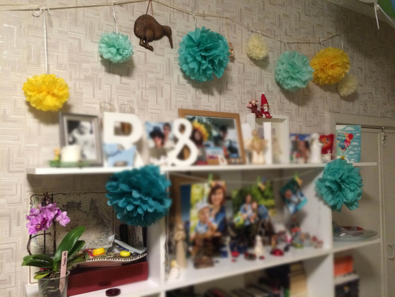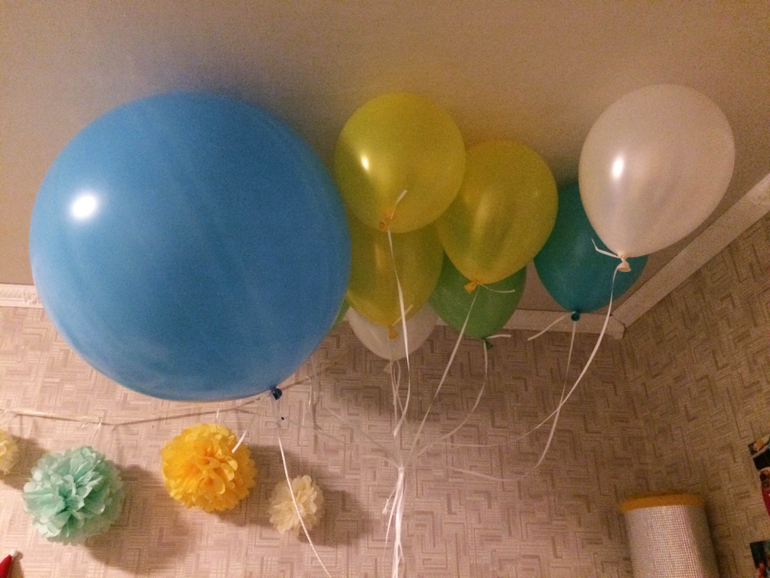 Вот и справили мы свой первый день рождения. Решили отпраздновать все в стиле "Путешествие" - паровозик с фотографиями, помпоны, воздушный шар и прочее, основные цвета-цвет морской волны, дополнительные-мятный и желтый. В-общем, именинник и гости остались довольны, а нам больше и не надо!