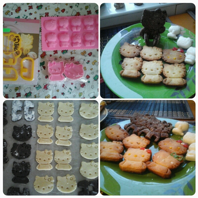 Торт и капкейки буду заказывать у кондитера. Печеньки с изображением Китти буду печь сама для деток, ну и для взрослых.Вот на этой неделе пробовала, вроде бы все получилось.