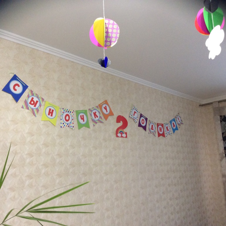 И вот настал день празднования! Утро началось ярко и красиво, а мама накануне надувала шары до 2 часов ночи :)))) и ещё вешала гирлянду из цветных бумажных цветов длинной 10м.