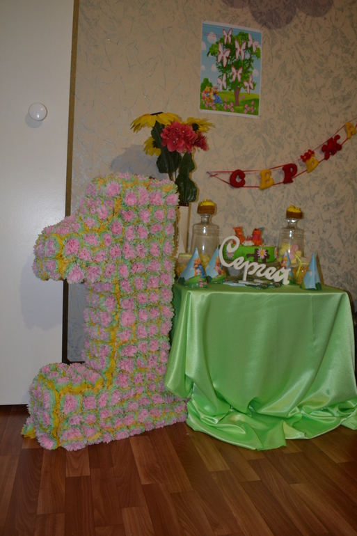 Мы делали в стиле Винни. При том для трех разных компаний делала разное оформление каждый раз. (Правда, больше так решила не заморачиваться. Очень много сил и времени ушло.) На 2 годика планирую делать ковбоев, на 3 - цирк. Подружка - сафари делала на годик, легопати - на 2. Все получилось ярко. Прикреплю несколько фото для примеров. (Можно, кстати, процесс превращения 2 наблюдать, на первый вечер не успела обклеить ее цветами, увы)