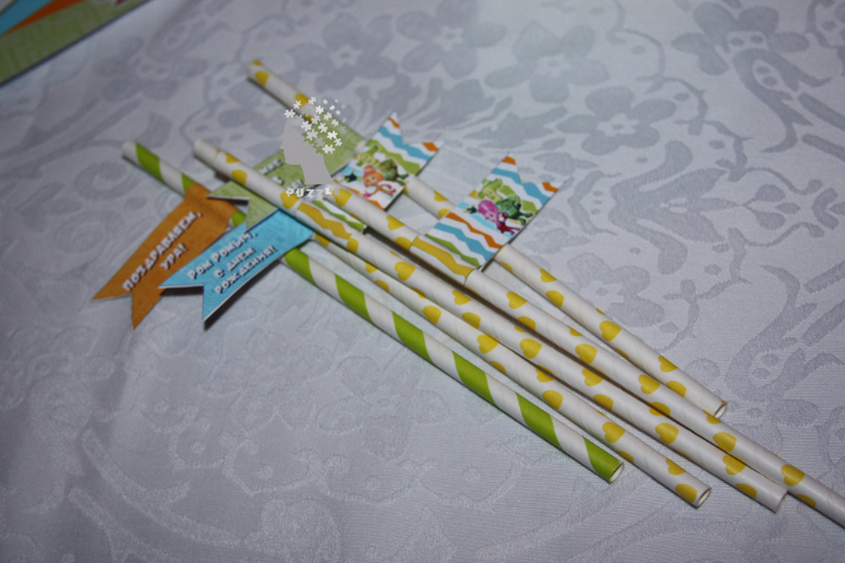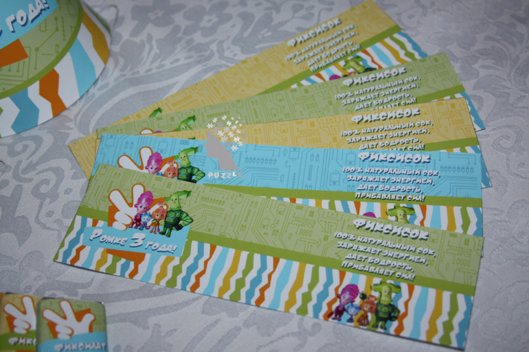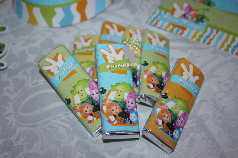 Предлагаю свои услуги!Этот наборчик у нас уже давно, но создан был только в электронном виде и цветовая гамма у него была шире. В этот раз была поставлена задача создать наборчик в зелено-голубой гамме и обязательно с любимыми героями именинника - Фиксиками, вот что из этого получилось: