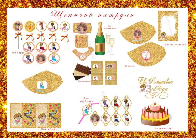 Набор для детского дня рождения "Щенячий Патруль в золоте".