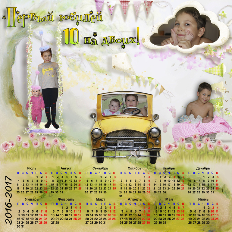 Брат с сестренкой родились в один день)) Вот такие календарики будут подарком для гостей на их празднике: