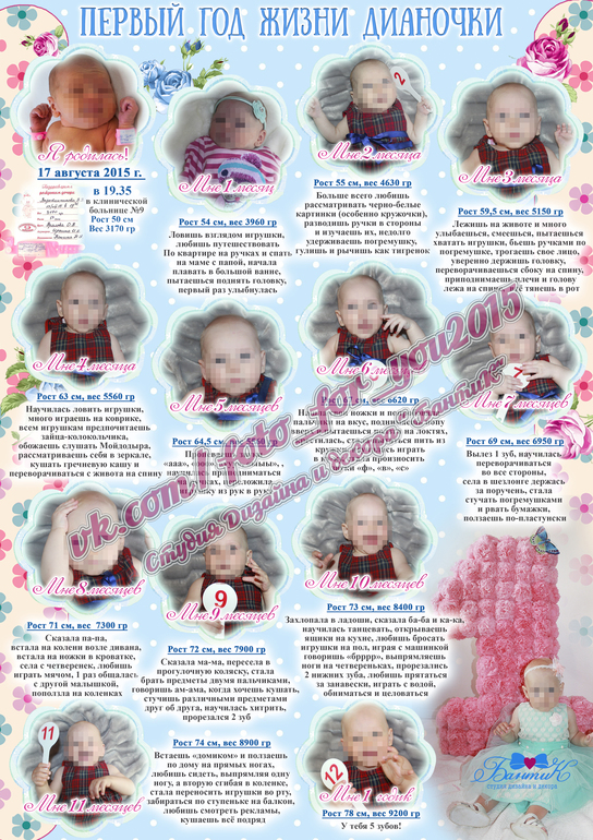 Коллаж "Первый год жизни" с умениями, ростом и весом по месяцам!