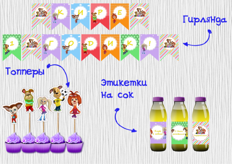 Предлагаю свои услуги!Яркий разноцветный набор на годовасие малышки Киры с героями любимого мультфильма.