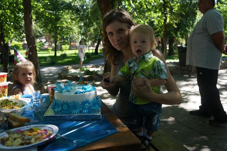 Сын видимо не понимал откуда столько людей и что происходит, но все внимание было на него обращено и ему это правилось)))) несколько фото нашего праздника