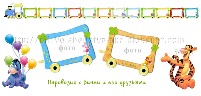Предлагаю свои услуги!Украшение в виде паровозика чудесно покажет, как вырос ваш ребенок за год, а веселые герои Винни и его друзья очень понравятся детям. В комплект входит паровозик + 12 вагонов формата А4. Стоимость 240,00 рублей без печати.