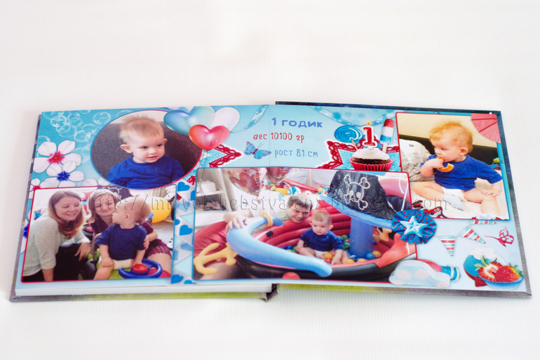 Предлагаю свои услуги!Фотокнига замечательный вариант сохранить на память яркие события первого годика вашего малыша! Рождение, выписка, первые успехи и первые зубы - незабываемые моменты в одной книге. На каждом развороте подписаны рост и вес малыша, также можно делать индивидуальные подписи к фотографиям.