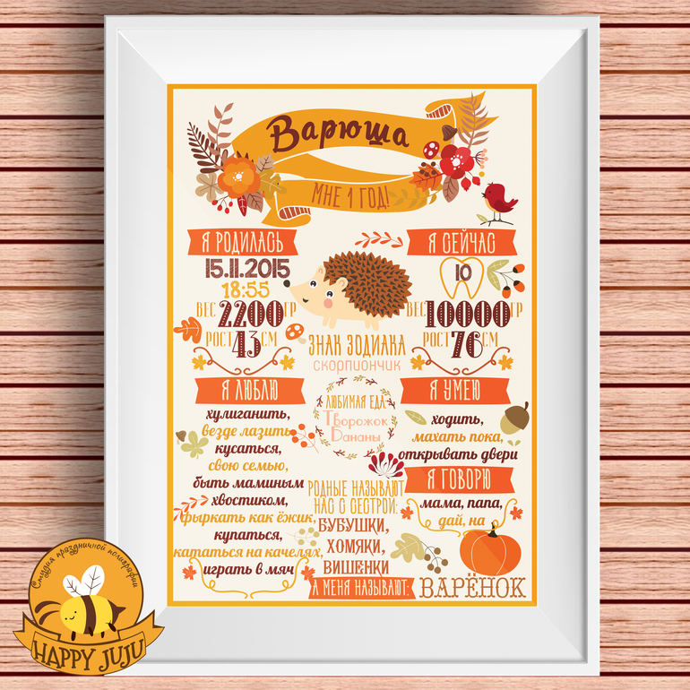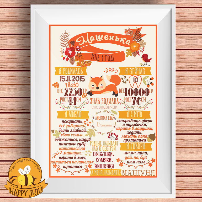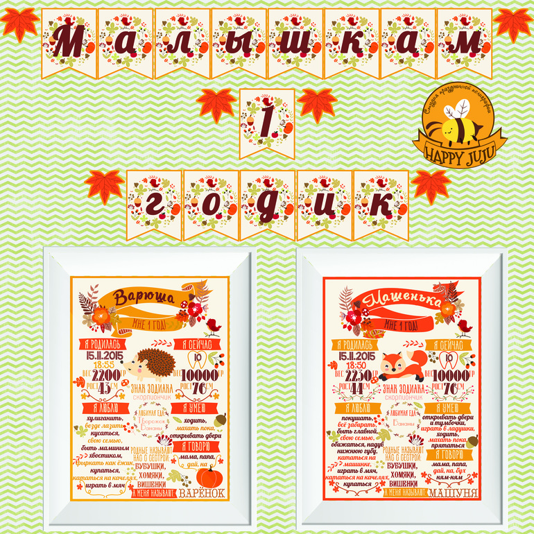 Яркий осенний день рождения. Постер постижений и гирлянда.
