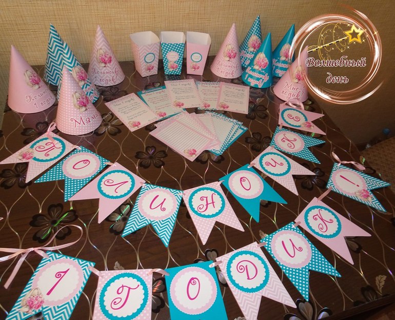 Предлагаю свои услуги!Забрали вот такой нежный розово-бирюзовый набор с милым Зайчиком, который был сделан для празднования Полиночки!